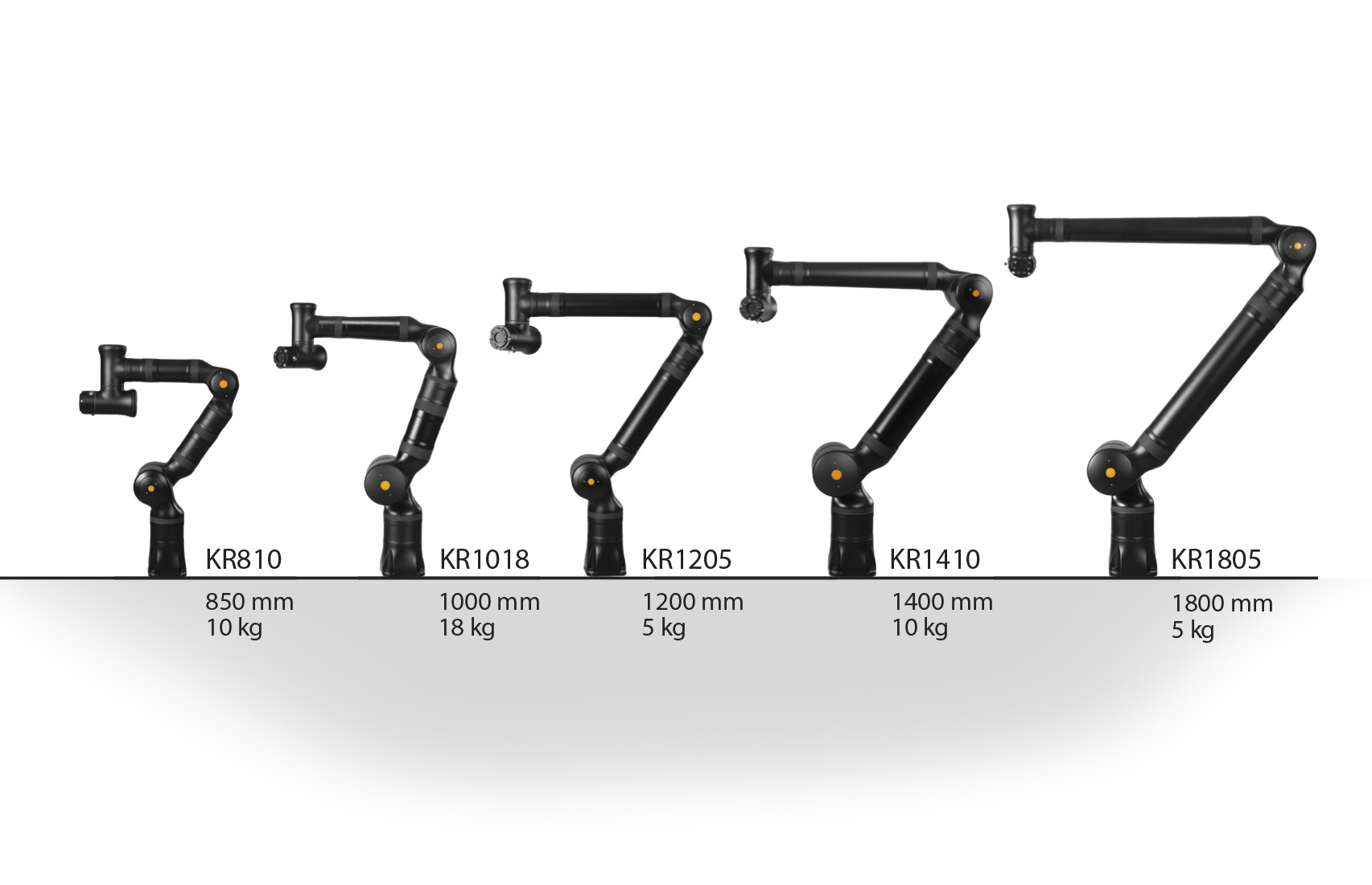 Una combinación única de séptimo eje, carga útil y alcance. Capacidad de carga desde 5 a 18 kg y un alcance de 850 a 1800 mm, todo ello a velocidades conjuntas de hasta 225 grados por segundo: nuestra gama de 5 modelos permite llegar a todos los rincones y realizar las tareas de fabricación más exigentes.